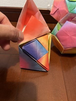 正六面体も、パカッとしますと、中から、またピラミッド型のもの(正四面体)が、、