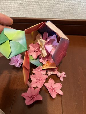蓋を大きく開けると、桜がこぼれ出てきます~