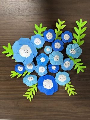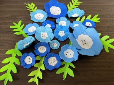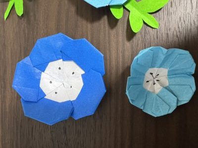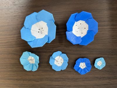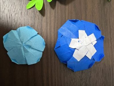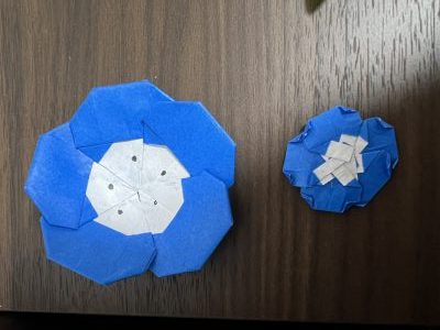 ↑左は、5枚の花弁を張り合わせ、右はなんと1枚の折紙で折っています(すげえ院長)